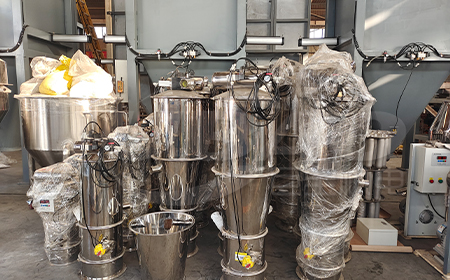 6、將降溫好的人造石墨材料集中取出。這里主要用到石墨然后進行篩分,得到加工好的人造石墨負極材料;當我們的材料通過多種工序加工成成品后,我們需要用粉體輸送系統,將其輸送至末端料倉或包裝工藝。值得注意的是,電機材料石墨粉體的輸送所用設備及管道材質要求較高,我們是采用316l不銹鋼材質來制作。