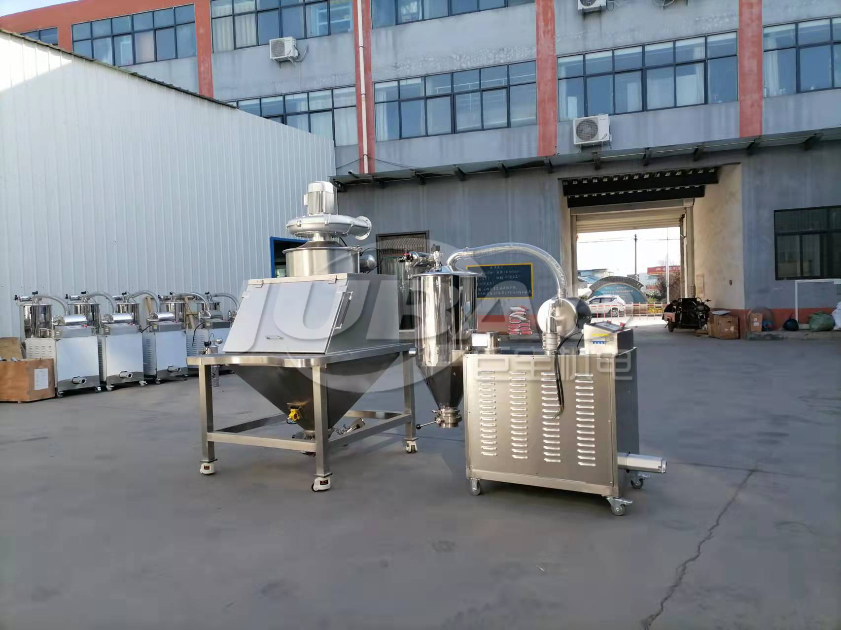 真空上料機作為一種輸送設備,將上游設備中的物料通過管道輸送到下游設備中,然后使用真空上料機從料桶或者料倉里將物料輸送到混料機、振動篩、反應釜、壓片機等加工設備中。雖然在這個過程中使用真空上料機設備了,環境得到了改善,但是我們發現在將物料從袋包中倒入料桶中還是會有不少的粉塵到處飛揚,造成空氣污染。時間久了工廠還是會飄散著大量的粉塵。針對這一現象,我們可以配合